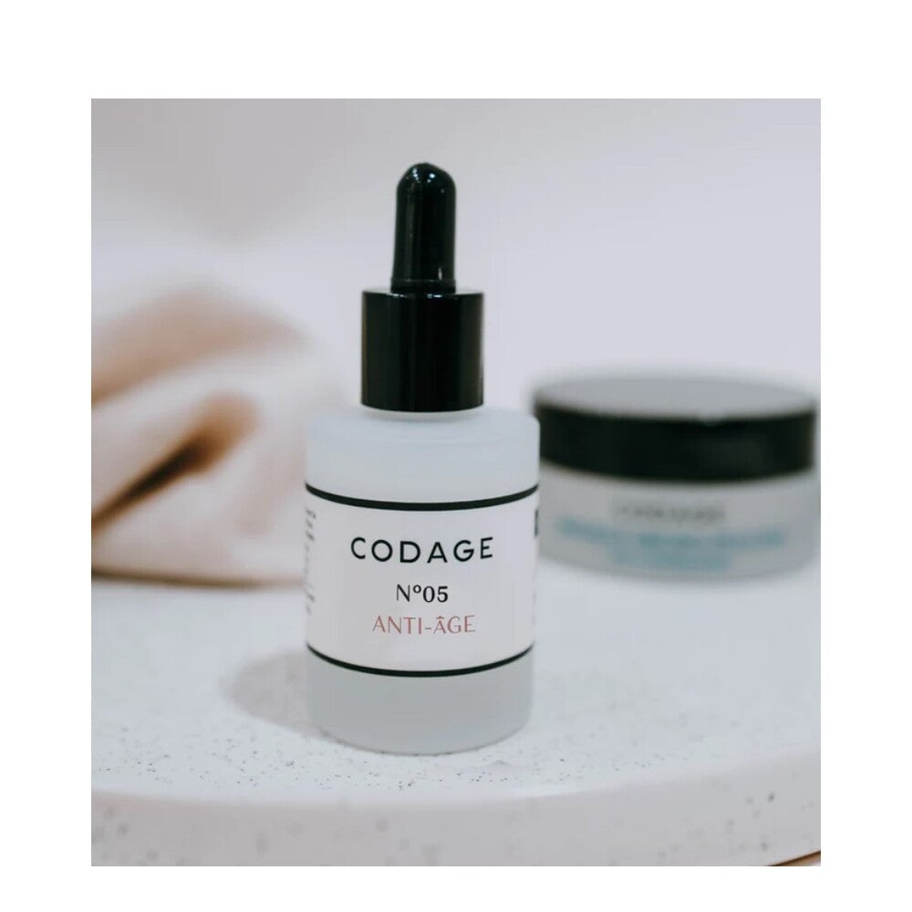 El Serum No. 5 Anti-Aging de CODAGE Paris protege y corrige los signos del envejecimiento de la piel. Su efecto estimulante optimiza y protege las funciones de las células madre y activa la formación de fibras de colágeno y tejido conectivo. Combinado con ingredientes relajantes, reafirmantes y antioxidantes, reduce las arrugas y actúa contra su reaparición. La piel puede contrarrestar mejor el proceso de envejecimiento, mientras que el tono se ve más suave y los contornos faciales más definidos.