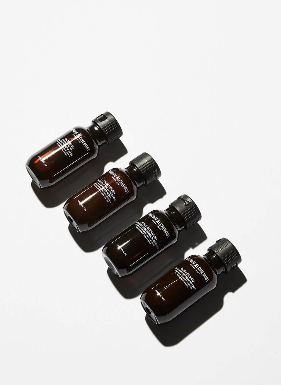 El compañero de viaje ideal de GROWN ALCHEMIST - los prácticos tamaños de viaje con los 4 productos más importantes para el cuerpo y el cabello:
