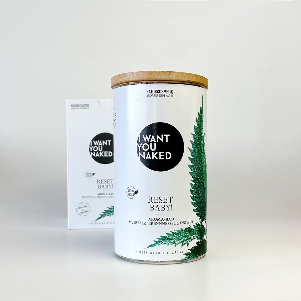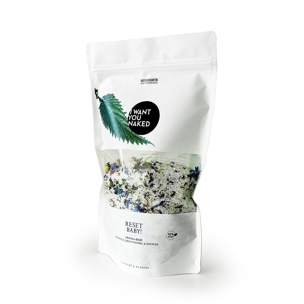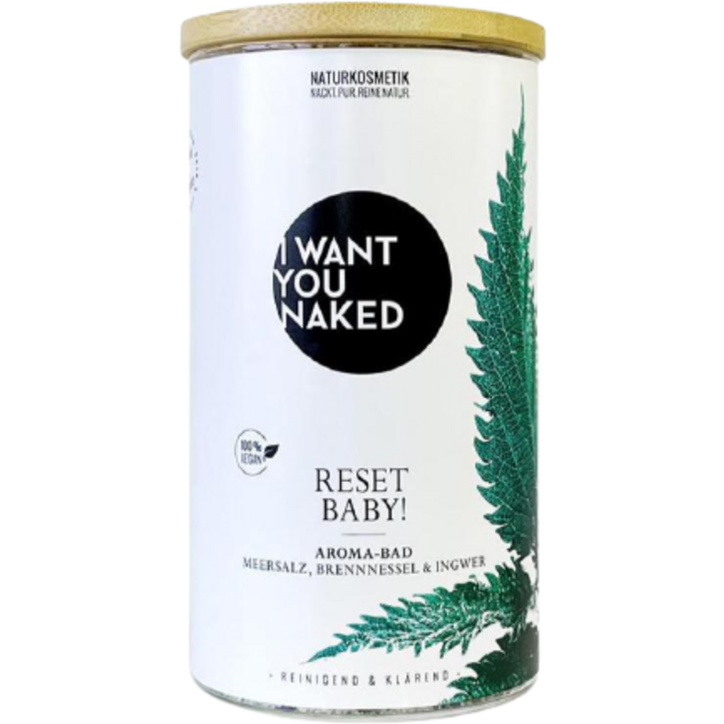 ¡Aquí vamos! Después de este baño no te sentirás de repente joven de nuevo. Pero te sentirás así. Porque con este baño obtienes una carga concentrada de desintoxicación natural. Una vez fuera con todo el lastre, una vez dentro con los buenos ingredientes activos. Y puedes relajarte tranquilamente, porque tu piel se encarga de todo. Impulsado por plantas medicinales efectivas, sales ricas en minerales y aceites finos. De sal marina, sal de Epsom, hojas y semillas de ortiga, hortensia, aciano, verbena de limón, aceite esencial de jengibre y albahaca. Este "RESET BABY" Baño Aromático Sal Marina, Ortiga & Jengibre de I want you naked actúa gracias a la ortiga y la sal de Epsom desintoxicando, depurando y liberando de manera única. Las tensiones y las toxinas se disuelven y los finos aceites contenidos de jengibre y albahaca le dan al baño un aroma cítrico y fresco: una experiencia revitalizante de bienestar para el cuerpo, la mente y el alma. Baño Aromático Sal Marina, Ortiga & Jengibre es 100% natural, sin fragancias, colorantes y conservantes sintéticos, siliconas, parafinas o materias primas a base de petróleo. Contenido fantástico, empaquetado de manera sostenible. Este baño aromático está en un hermoso frasco con tapa de bambú real. Demasiado bonito para tirar: úsalo de nuevo y pide los prácticos paquetes de recarga.