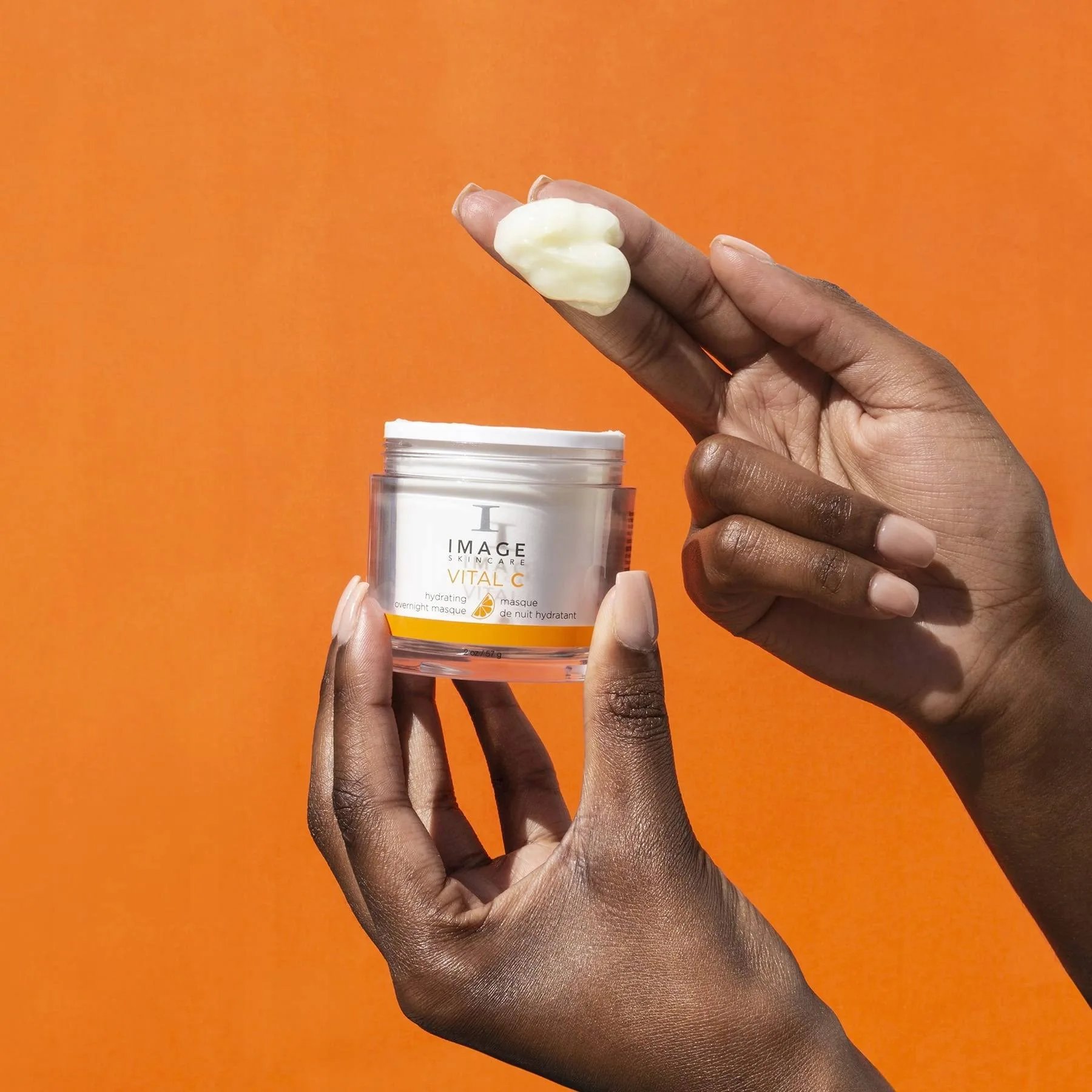CONSEJO PROFESIONAL: Para una hidratación adicional, añada el suero antioxidante hidratante Vital C ACE a la mascarilla de noche Vital C.