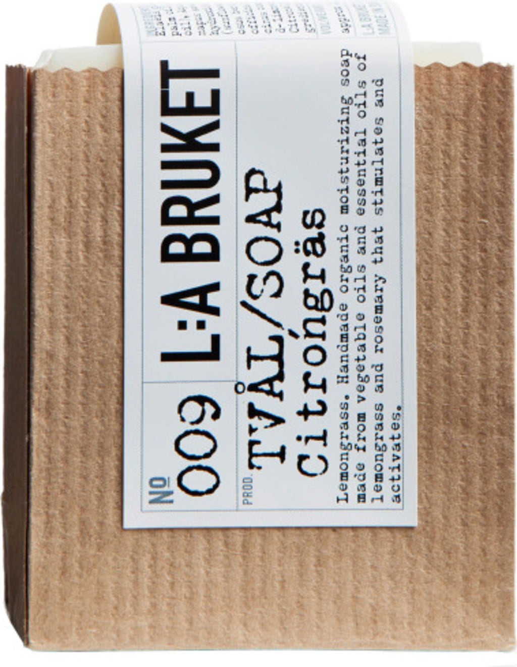 No. 009 Jabón en Barra de Hierba Limón de LA:BRUKET es un trozo de jabón hecho a mano y 100% natural, cuya suave espuma limpia las manos y el cuerpo mientras proporciona hidratación. Los aceites esenciales de hierba limón y romero refrescan, calman y tienen propiedades emolientes y antisépticas. La fragancia cítrica y amaderada refresca y revitaliza.
