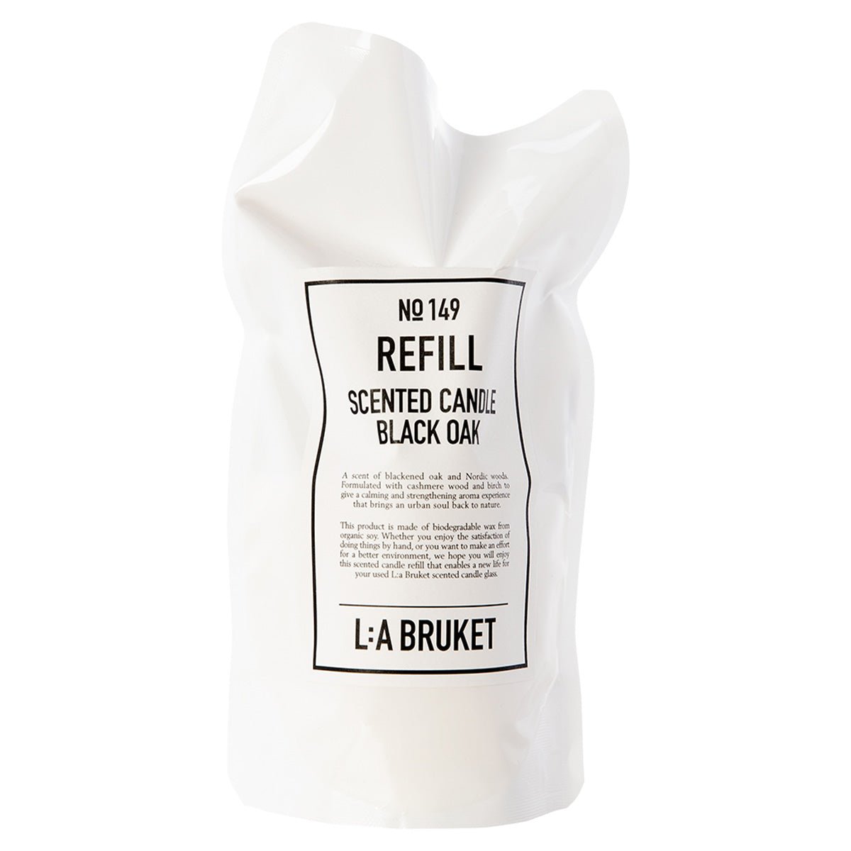Vela de recarga para vidrio No.149 Vela Aromática Roble Negro de LA:BRUKET emite un aroma reconfortante y potente a roble negro y bosques nórdicos. La combinación aromática de madera de cachemira y abedul te transporta a la naturaleza. Las Velas Aromáticas están hechas de cera de soja orgánica y son vertidas a mano por expertos en frascos soplados a boca. Están disponibles en cuatro fragancias diferentes. La fragancia aromática y el diseño elegante llenan cada espacio con una atmósfera maravillosa. Algunas de las velas te dan nueva energía cuando te sientes cansado y agotado, otras te ayudan a desconectar y relajarte. Duración de la combustión 260g = 45h+.