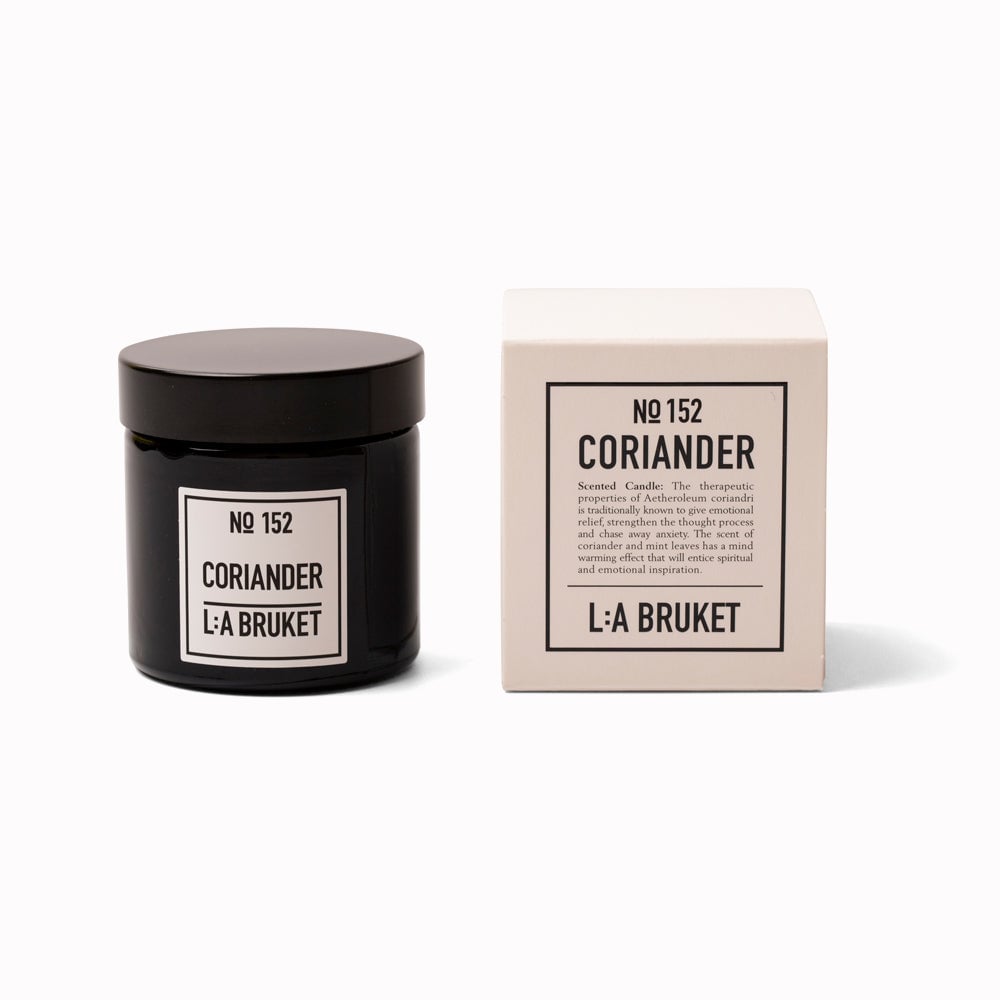 Vela recargable para vidrio No.152 Vela Aromática Cilantro de LA:BRUKET estimula la mente y ahuyenta la inquietud y la tensión. Las propiedades terapéuticas del aceite de cilantro tienen un efecto emocional equilibrante, la menta estimula la mente y libera energía inspiradora espiritual y emocional. Las Velas Aromáticas están hechas de cera de soja orgánica y son vertidas a mano por expertos en frascos soplados a boca. Están disponibles en cuatro aromas diferentes. La fragancia aromática y el diseño elegante llenan cada espacio con una maravillosa atmósfera. Algunas de las velas te dan nueva energía cuando te sientes cansado y tenso, otras te ayudan a desconectar y relajarte. Duración de la combustión 260g = 45h+.