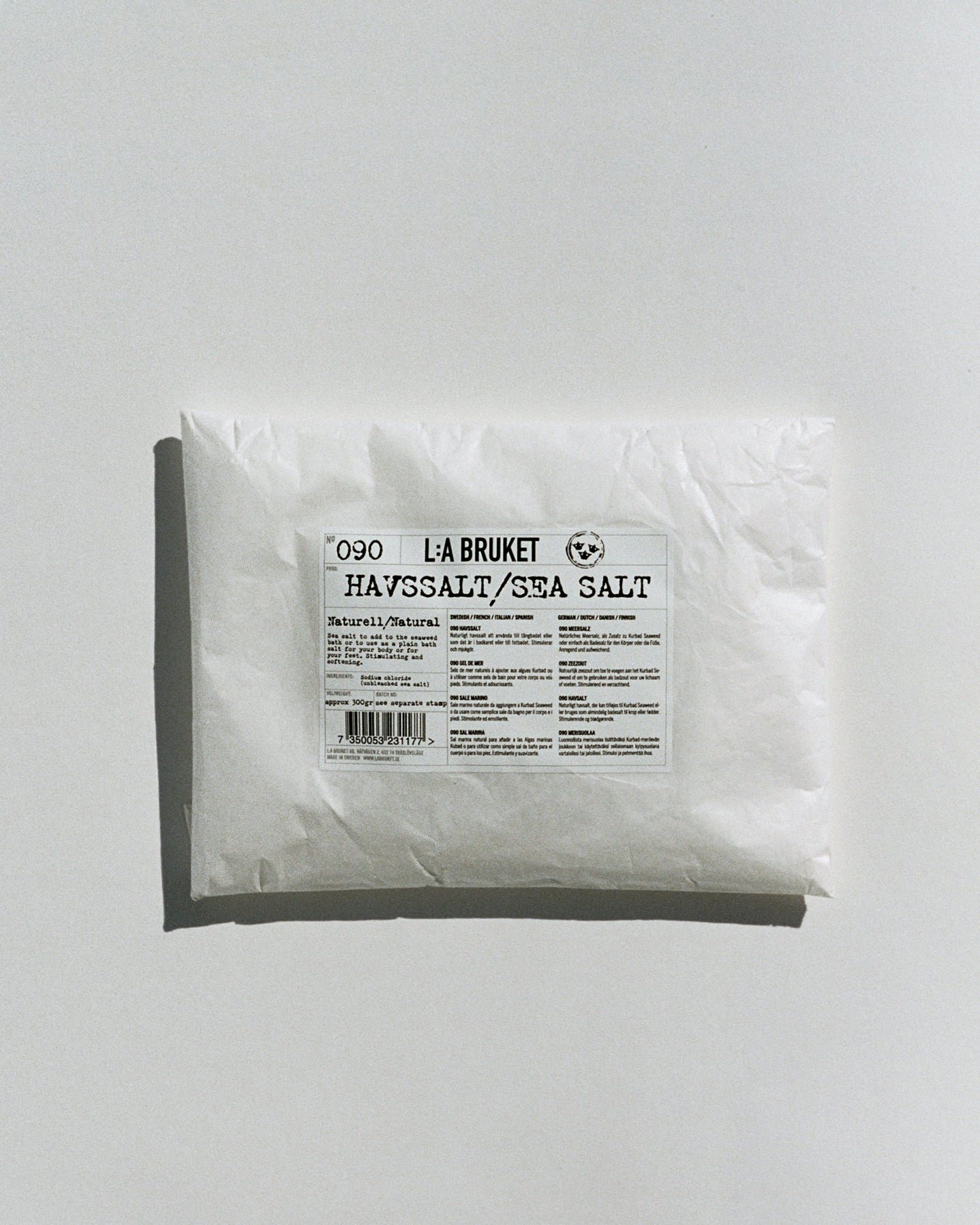 No. 090 Sal Marina es una sal marina natural de Suecia, que es ideal para complementar el No. 051 Spa Bath Seaweed Agenbad. También se puede usar como sal de baño de forma independiente. La sal marina limpia, estimula la circulación sanguínea y proporciona una piel suave y sedosa.