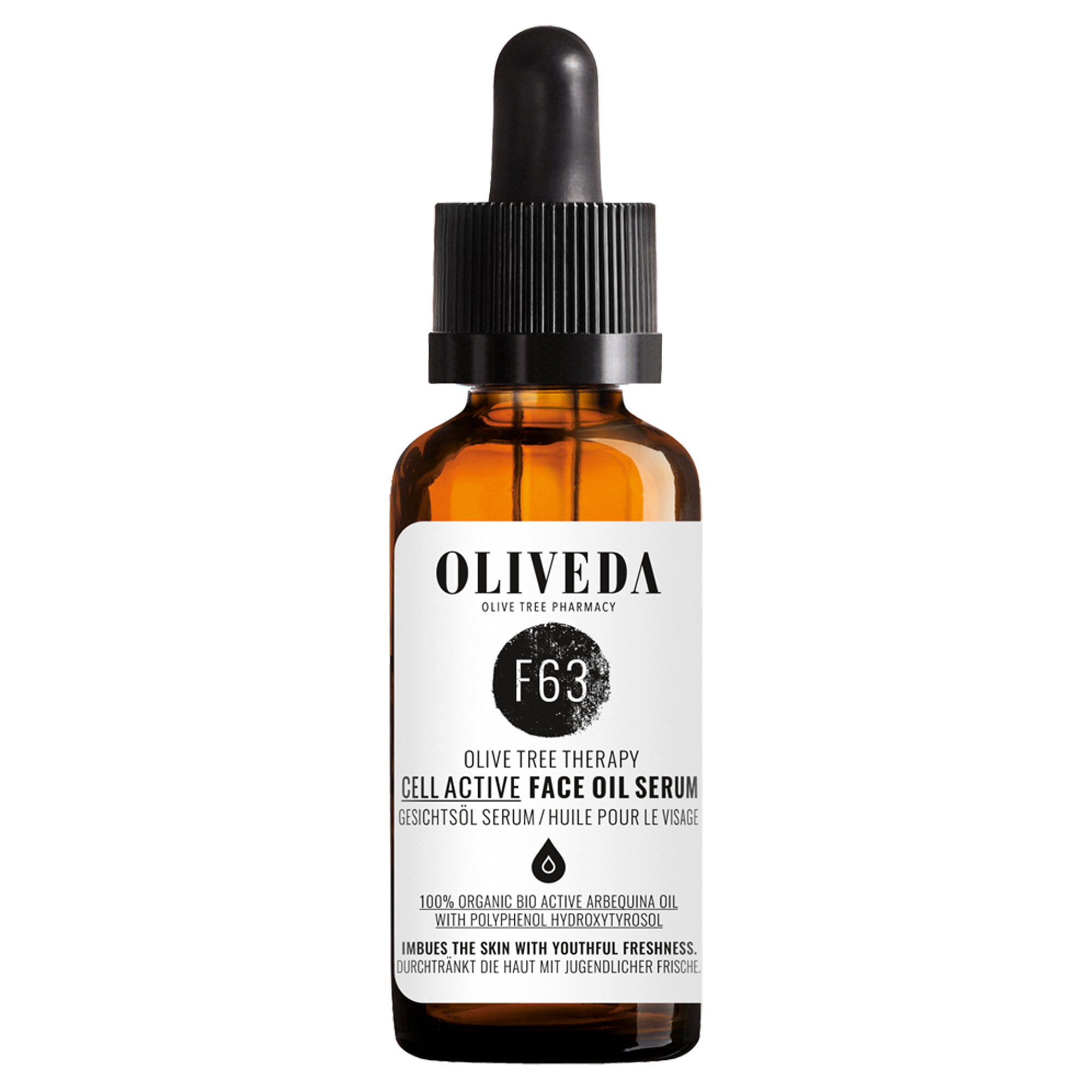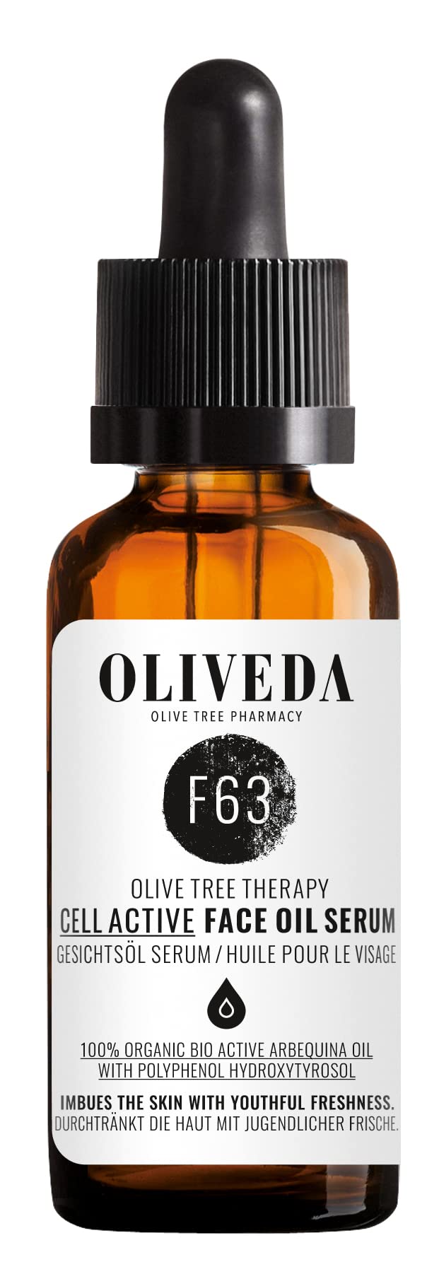 El aceite facial Cell Active es un verdadero multitalento y un imprescindible. Empapa la piel con frescura juvenil y otorga nueva energía a las células, de modo que la piel brilla suave, flexible y viva. Una combinación de alta calidad de exclusivos superantioxidantes del olivo de montaña y aceites vivos, combinada con el complejo "OLIVEDA GLOW", despliega ingredientes activos anti-envejecimiento altamente efectivos. El aceite de Arbequina y el aceite de aguacate son similares a la capa lipídica de la piel y pueden ser absorbidos de manera óptima. El oleuropeína protege la piel de influencias ambientales negativas. El aceite facial Cell Active reúne todo lo que hace únicos a los aceites de OLIVEDA: el más fino aceite de Arbequina de la reserva natural, un tratamiento especial de semanas de las hojas de olivo y una prensado en frío cuidadoso para un máximo impulso de antioxidantes y nutrientes. Un cuidado intensivo que se siente y se ve claramente. Después de la limpieza por la mañana y por la noche, aplicar en combinación con el suero facial Cell Active de OLIVEDA. Mezclar cada pipeta de suero facial con 3-4 gotas del aceite facial Cell Active, aplicar y ¡brillar! También es excelente para usar como producto único.