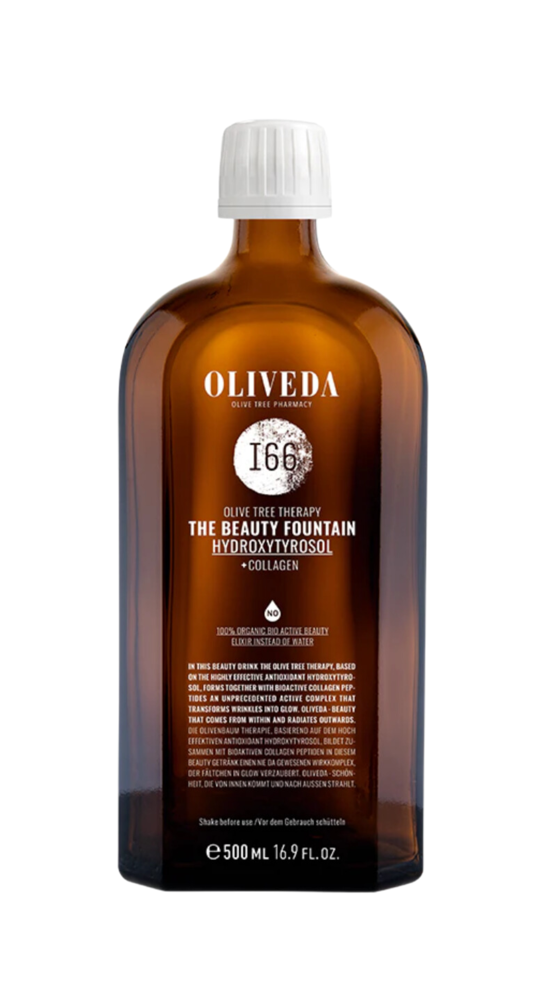 ¡LA REVOLUCIÓN DE LA BELLEZA! La dosis diaria de belleza para una piel más fina, más rosada y más firme, 60% de aumento en la elasticidad de la piel, reducción significativa de arrugas después de solo 4 semanas, hasta un 60% más de colágeno en las células después de solo 4 semanas, reducción de la celulitis después de 3 meses, uñas más saludables y fuertes y un sistema inmunológico fortalecido. The Beauty Fountain ofrece un poder anti envejecimiento holístico y protección celular de alto nivel, para una belleza desde adentro que brilla hacia afuera. The Beauty Fountain combina hidroxitirosol con péptidos de colágeno bioactivos, que contrarrestan el proceso natural de descomposición del ácido hialurónico y colágeno en las células y al mismo tiempo estimulan su nueva producción. Además, el extracto del potenciador de vitamina C Camu Camu y los fitoestrógenos de la granada crean sinergias naturales con los ingredientes activos principales. Para uso interno. Tomar un vaso medidor de 17,5 ml por la mañana o por la noche entre comidas. Te recomendamos un uso durante un período de al menos 6 a 10 semanas, estudios han demostrado que el contenido de colágeno en el cuerpo se reabastece completamente después de un tratamiento de 3 meses. Almacenar la botella en el refrigerador después de abrirla.