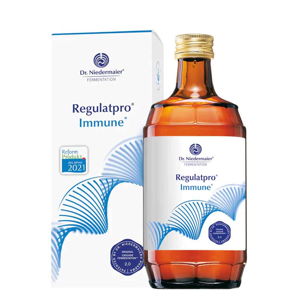 ¡Impulso natural! El Regulatpro® Immune Drink de REGULAT BEAUTY es un complemento alimenticio con vitaminas y minerales. A través del proceso de fabricación patentado de fermentación en cascada 2.0, el Regulatpro® Immune Drink contiene una combinación única de nutrientes que son fundamentales para la función inmunológica y su regulación: fitoquímicos con metabolitos, postbióticos, enzimas madre y micronutrientes.
