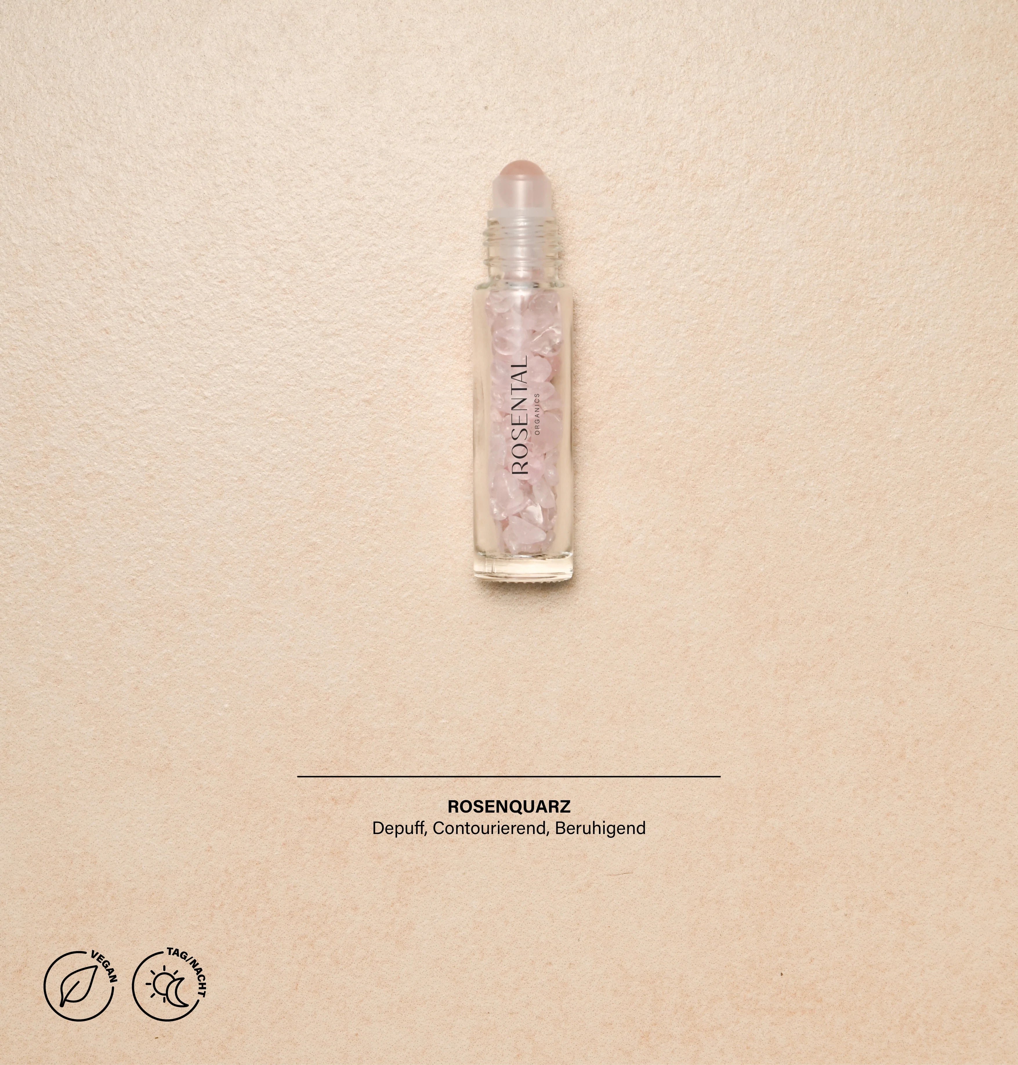 Entspannende masaje facial y refrescante revitalizante sobre la marcha? ¿Tienes ganas de Face Yoga – ya sea de viaje, en la oficina o simplemente en movimiento? Dondequiera que estés, el nuevo Face Yoga Roll-On Set lo hace posible! Porque la solución definitiva del set, que consiste en el Rosental Organic Squalan 30ml y el Face Yoga Roll-On con aplicador de bola de cuarzo rosa refrescante (Gua Sha), combina cuidado y herramienta en uno – y eso en un práctico tamaño para llevar para la recarga definitiva en cualquier momento! Gracias a la combinación de suero y aplicador Roll-on, verás máximos resultados, gracias a la combinación de ingredientes que cuidan la piel y la acupresión regeneradora. El suave masaje promueve la circulación sanguínea debajo de los ojos, haciéndolos más rosados y relajados. Al mismo tiempo, se minimizan las acumulaciones, lo que hace que las ojeras desaparezcan a largo plazo. Además del efecto relajante sobre la musculatura ocular, el movimiento deslizante activa el sistema linfático y así disuelve un estancamiento linfático existente – lo que reduce las congestiones en la cara, transporta de nuevo las sustancias nocivas, limpia la piel desde adentro y reduce el acné y las impurezas. El masaje con la herramienta Gua Sha en las sienes, el cuello, los hombros y detrás de las orejas tiene un efecto analgésico y, por lo tanto, es óptimo contra la migraña, el dolor de cabeza y el dolor de cuello. Rellena el Rose Quartz Face Yoga Roll-On con el tratamiento de tu elección, agita brevemente para mezclarlo con las piedras de cuarzo rosa y ¡masajea! Cuando el Roll-on esté vacío - ¡rellena! ¿Fácil, verdad? Apto para todo tipo de piel. Vegano.