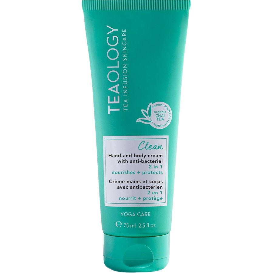 Yoga Care Clean Hand & Body Cream anti-bacteria de TEAOLOGY es una crema para manos y cuerpo de rápida absorción. Forma una barrera protectora en las manos, las calma de inmediato y las hace suaves. Los ingredientes naturales ayudan a fortalecer las defensas naturales de la piel. Una infusión de té negro, que ha sido probada contra la contaminación y el estrés oxidativo, protege la piel de influencias externas y del lavado frecuente, mientras que la manteca de karité nutre y previene la sequedad y la formación de grietas. La crema está enriquecida con un complejo desinfectante natural de: