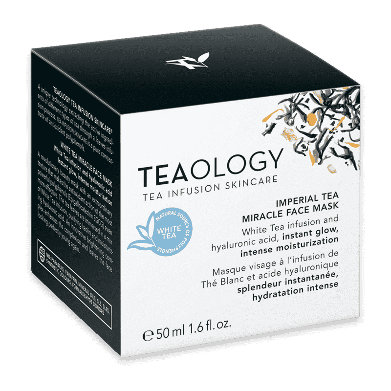 La máscara facial Imperial Tea Miracle de TEAOLOGY le brinda instantáneamente un cutis radiante. La revolucionaria máscara de belleza con una textura excepcional está formulada con una infusión de hojas de té blanco, que hace que la acción antioxidante de los polifenoles más potentes (Epigalocatequina EGCG) sea aún más efectiva. Las hojas de té reales están sumergidas en una mezcla limpiadora de caolín y ácido hialurónico hidratante y reafirmante. El innovador complejo iluminador a base de extractos de onagra y margaritas unifica el tono de la piel y hace que el rostro luzca perfectamente joven nuevamente. Aplique una capa uniforme sobre el rostro y el cuello secos, evitando el área de los ojos. Enjuague después de 5 a 10 minutos. Use de una a dos veces por semana. Para el área de los ojos, use la máscara ocular White Tea Miracle.