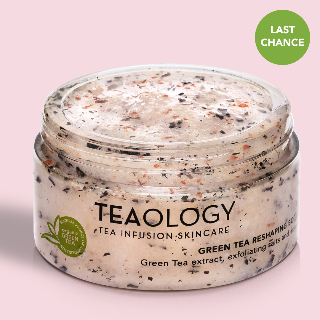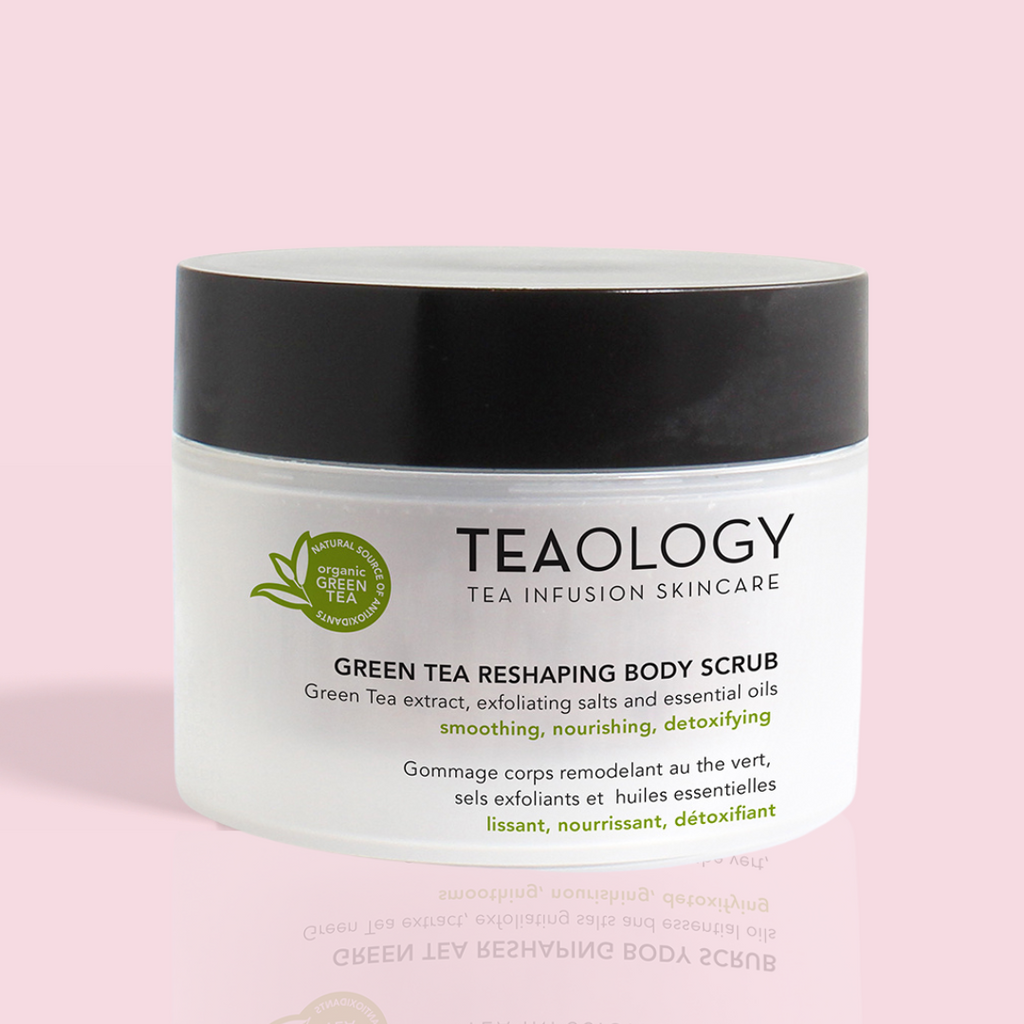 El Teaology Green Tea Reshaping Body Scrub es un increíble exfoliante corporal hecho de una mezcla de sales marinas enteras, un concentrado de hojas de té y aceites esenciales. Alisa la piel y ayuda a eliminar líquidos en exceso, gracias al efecto iono-osmótico de las sales marinas. Una vez que se han eliminado las células muertas y las impurezas, la piel es más receptiva, permitiendo que el efecto modelador y reductor del té verde se despliegue. Los aceites nutritivos, energizantes y tonificantes dejan la piel suave y flexible.