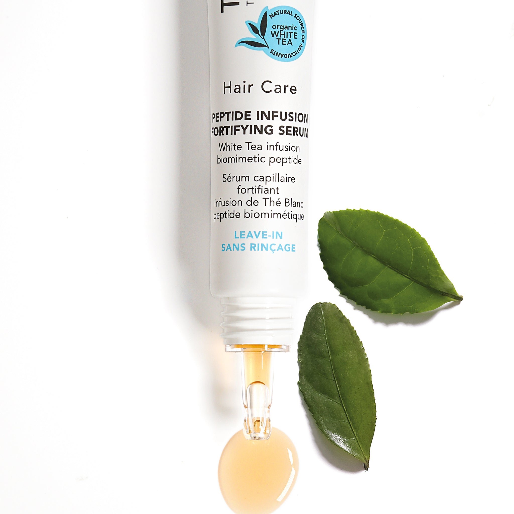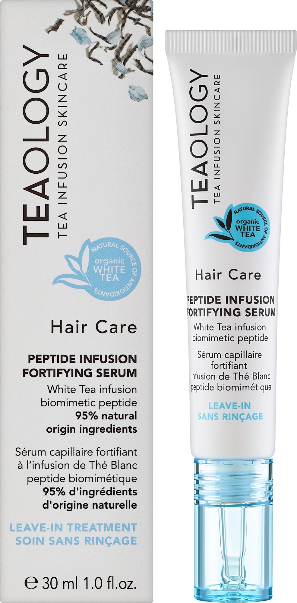 Suero fortalecedor para el cabello y el cuero cabelludo con infusión de té blanco, péptidos biomiméticos y prebióticos. Libre de silicona, libre de sulfatos, seguro para el cabello teñido, protege el microbioma, no afecta el sistema hormonal. Un tratamiento con resultados excepcionales que, gracias a su avanzada tecnología de péptidos biomiméticos, hace que el cabello luzca más denso, grueso y lleno. En esta formulación se combinan extracto de té - rico en epigalocatequina galato y un péptido biomimético, para revitalizar la raíz del cabello y fortalecer su anclaje. El cabello se fortalece y se vuelve más resistente. La biotina nutre y regenera, la cafeína y el extracto de té blanco, una fuente natural de catequinas, estimulan las raíces y mantienen el crecimiento del cabello activo. El complejo prebiótico a base de azúcar fortalece el microbioma del cuero cabelludo y protege contra irritaciones y cabello quebradizo. Dejar actuar, no enjuagar y sin residuos visibles.
