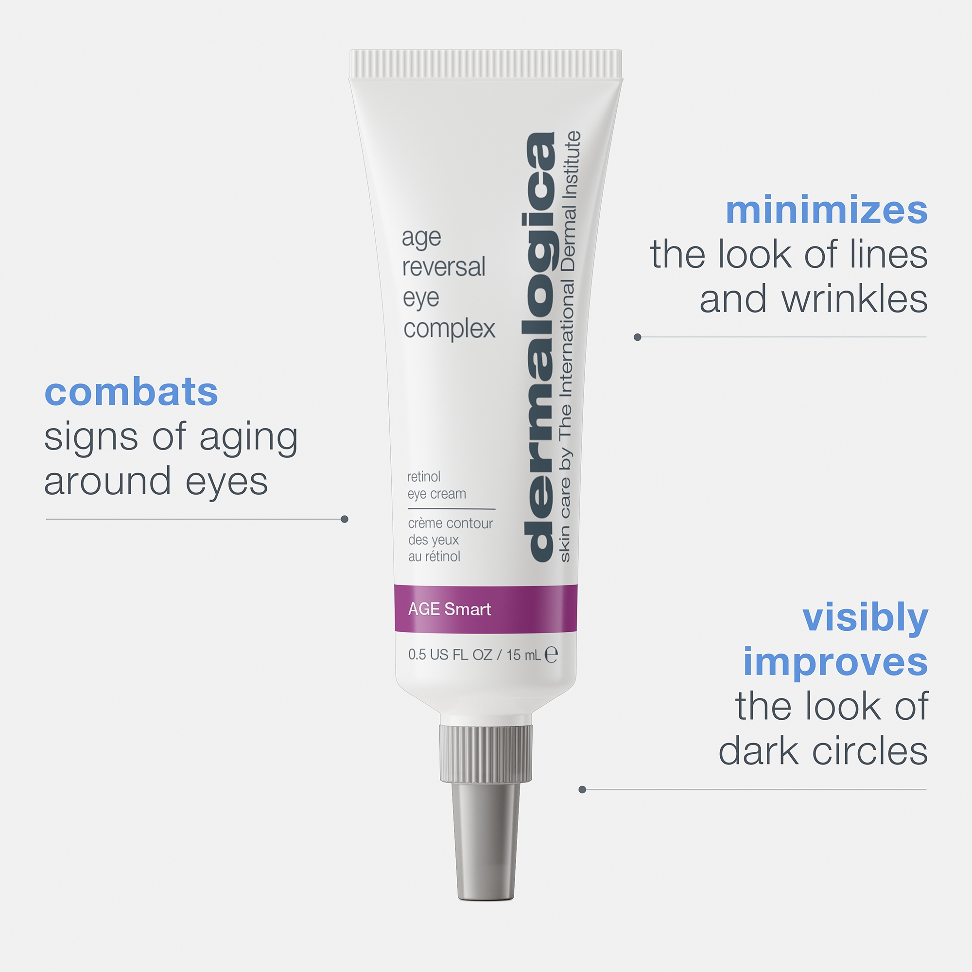dermalogica Age Reversal Eye Complex es un potente tratamiento para los ojos nocturno que combate las arrugas y patas de gallo, la hinchazón, las ojeras oscuras por pigmentación y la sensibilidad de la zona ocular debido a la falta de hidratación. La microencapsulación de los ingredientes exclusivos facilita la penetración en las capas profundas de la piel. El retinol reduce la profundidad de las arrugas y minimiza los efectos del envejecimiento biológico y por luz. La piel se alisa, se fortalece y se protege contra daños adicionales. Age Reversal Eye Complex es vegano, libre de gluten, microplásticos, lanolina, alcohol desnaturalizado, colorantes y fragancias artificiales, parabenos y se elabora sin pruebas en animales