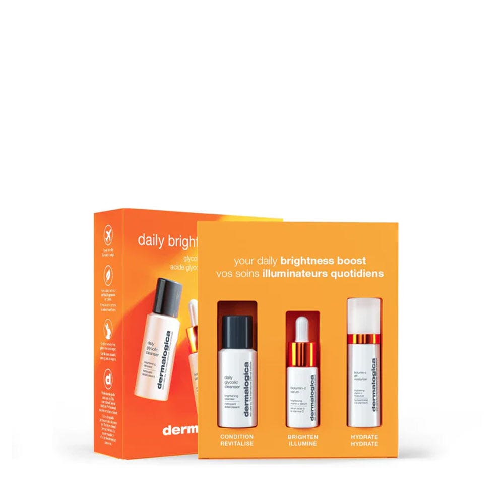 Descubre el dermalogica Daily Brightness Boosters - Set de cuidado facial con vitamina C y dale a tu piel un aspecto radiante y juvenil. Los ingredientes altamente efectivos, incluido el Biolumin-C Serum, están especialmente diseñados para potenciar el brillo natural de tu piel y reducir líneas finas y manchas de pigmentación. El efecto antioxidante del suero rico en vitaminas protege tu piel de los daños ambientales y apoya la regeneración de la piel.