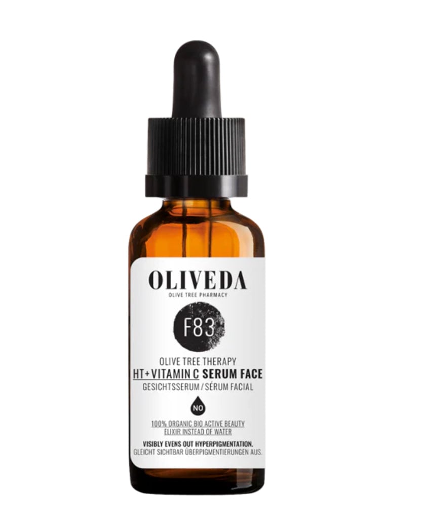 El suero facial Oliveda F83 HT + Vitamina C es un suero facial que mejora la piel. El Camu Camu proporciona más vitamina C que cualquier otra fruta cítrica y combate, por lo tanto, en sinergia con HT (hidroxitrosol) de manera especialmente efectiva contra los radicales libres, protege las fibras de colágeno, equilibra la hiperpigmentación y otorga a la piel un brillo radiante. Apto para todo tipo de piel.